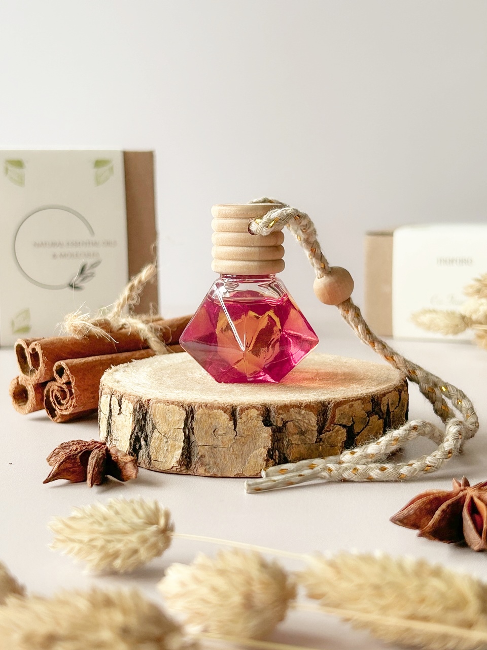 Zapach do samochodu stworzony tylko z naturalnych olejków eterycznych. Mieszanka olejków eterycznych użytych do stworzenia Cinnamon Leaf poprawia nastrój, zabija bakterie w powietrzu, wpływa korzystnie na koncentrację.
